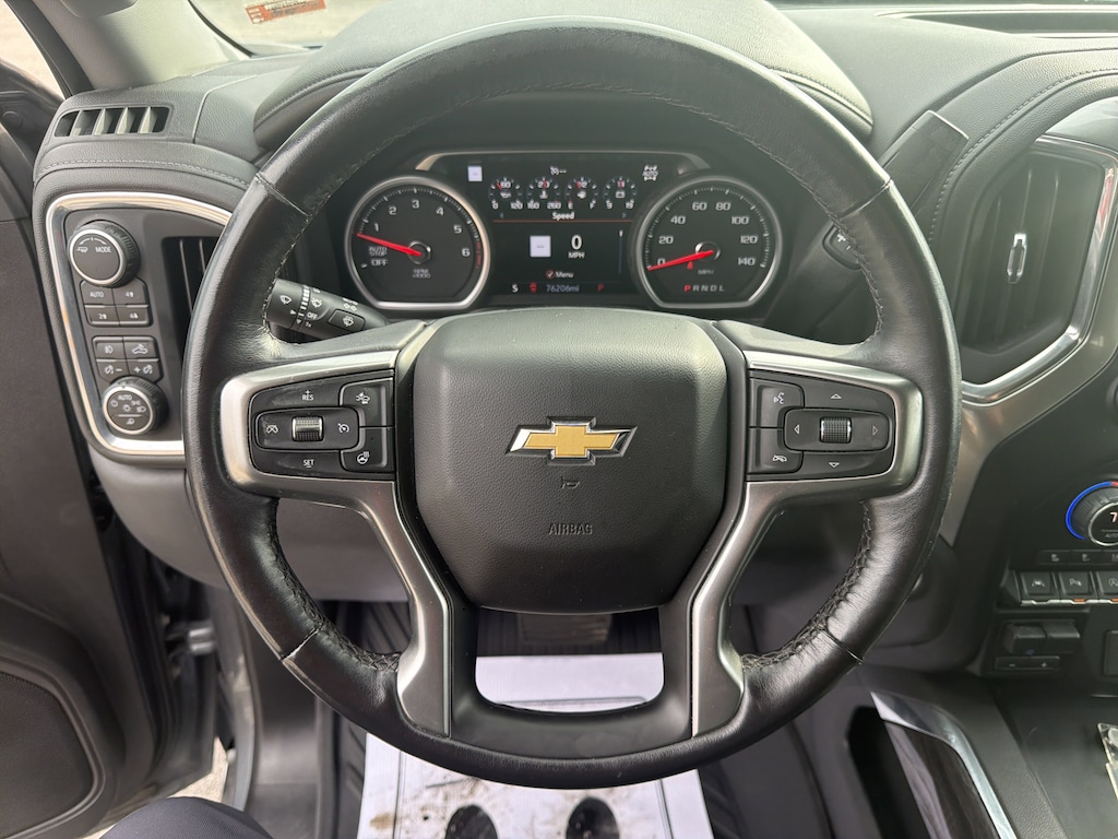 10-Way Power Driver Seat w/Lumbar, 10-Way Power Passenger Seat Adjuster w/Lumbar, 12-Volt Rear Auxiliary Power Outlet, 120-Volt Bed Mounted Power Outlet, 120-Volt Instrument Panel Power Outlet, 15 Diagonal Multicolor Head-Up Display, 2 USB Ports, 2 USB Ports (First Row), 4.2 Diagonal Color Display Driver Info Center, 8 Driver Information Center, Adaptive Cruise Control, Advanced Trailering System, All-Weather Floor Liner (LPO) (AAK), Auto-Dimming Inside Rear-View Mirror, Auto-Locking Rear Differential, Automatic Emergency Braking, Auxiliary External Transmission Oil Cooler, Bed View Camera, Bluetooth® For Phone, Chevrolet Connected Access Capable, Chevytec Spray-On Black Bedliner, Chrome Grille, Chrome Mirror Caps, Color-Keyed Carpeting Floor Covering, Compass, Deep-Tinted Glass, Driver Memory, Dual Exhaust w/Polished Outlets, Electric Rear-Window Defogger, Electronic Cruise Control, Floor Mounted Center Console, Following Distance Indicator, Forward Collision Alert, Front Frame-Mounted Black Recovery Hooks, Front LED Fog Lamps, Front Pedestrian Braking, Front Rubberized Vinyl Floor Mats, HD Rear Vision Camera, HD Surround Vision w/2 Trailer View Camera Provisions, Heated Driver & Front Outboard Passenger Seats, Heated Steering Wheel, Heavy-Duty Air Filter, Hill Descent Control, Hitch Guidance, Hitch Guidance w/Hitch View, Integrated Trailer Brake Controller, IntelliBeam Automatic High Beam On/Off, Keyless Open & Start, Lane Change Alert w/Side Blind Zone Alert, Lane Keep Assist w/Lane Departure Warning, Leather Wrapped Steering Wheel, LED Cargo Area Lighting, LTZ Convenience Package, LTZ Plus Package, Manual Tilt/Telescoping Steering Column, Off-Road Suspension, OnStar & Chevrolet Connected Services Capable, Outside Heated Power-Adjustable Mirrors, Perimeter Lighting, Power Door Locks, Power Front Passenger Windows w/Express Up/Down, Power Front Windows w/Driver Express Up/Down, Power Rear Windows w/Express Down, Power Sliding Rear Window w/Rear Defogger, Power Sunroof, Power Tailgate, Preferred Equipment Group 1LZ, Rear Camera Mirror, Rear Cross Traffic Alert, Rear Dual USB Charging-Only Ports, Rear Rubberized-Vinyl Floor Mats, Rear Wheelhouse Liners, Remote Vehicle Starter System, Safety Alert Seat, Safety Package, Safety Package II, Standard Tailgate, Steering Wheel Audio Controls, Technology Package, Theft Deterrent System (Unauthorized Entry), Trailering Package, Ultrasonic Front & Rear Park Assist, Universal Home Remote, Up-Level Rear Seat w/Storage Package, Ventilated Driver & Front Passenger Seats, Wheels: 20 x 9 Polished Finish, Wi-Fi Hot Spot Capable, Wireless Phone Projection, Z71 Off-Road & Protection Package, Z71 Off-Road Package. Satin Steel Metallic 2022 Chevrolet Silverado 1500 LTD LTZ 4WD 8-Speed Automatic EcoTec3 5.3L V8